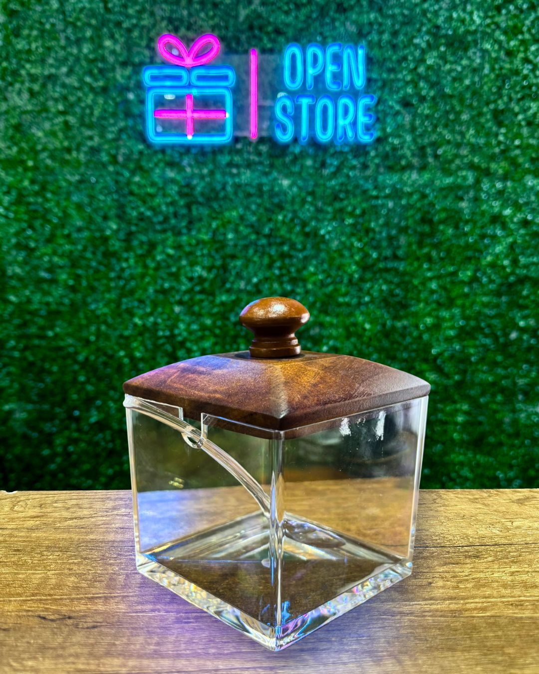 AZUCARERA ACRILICO CON CUCHARA Y TAPA DE MADERA