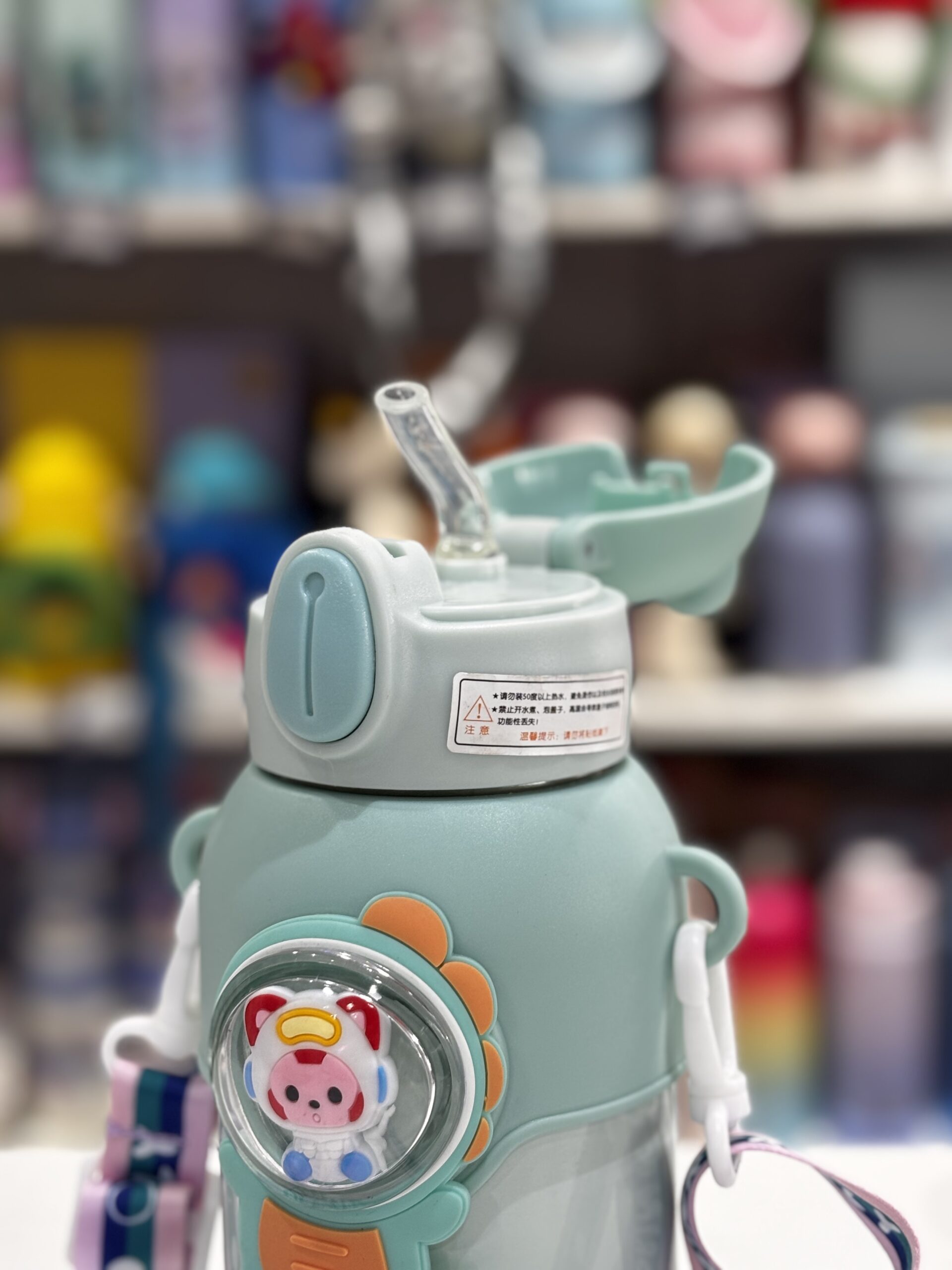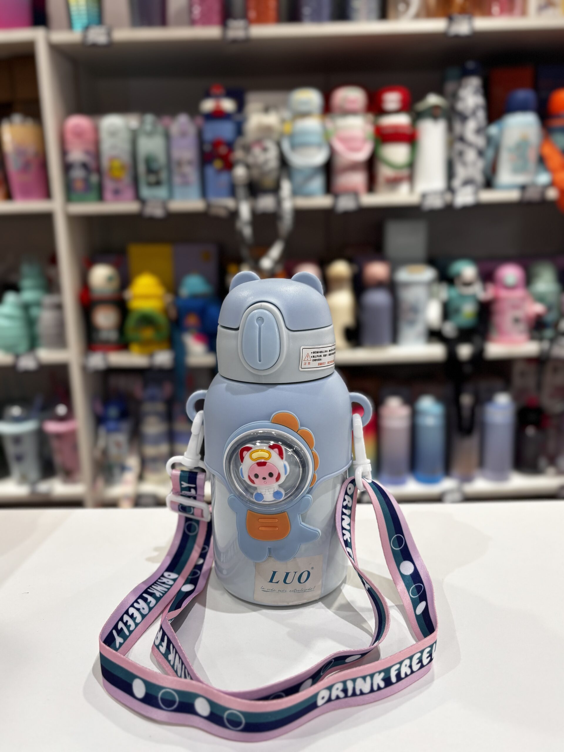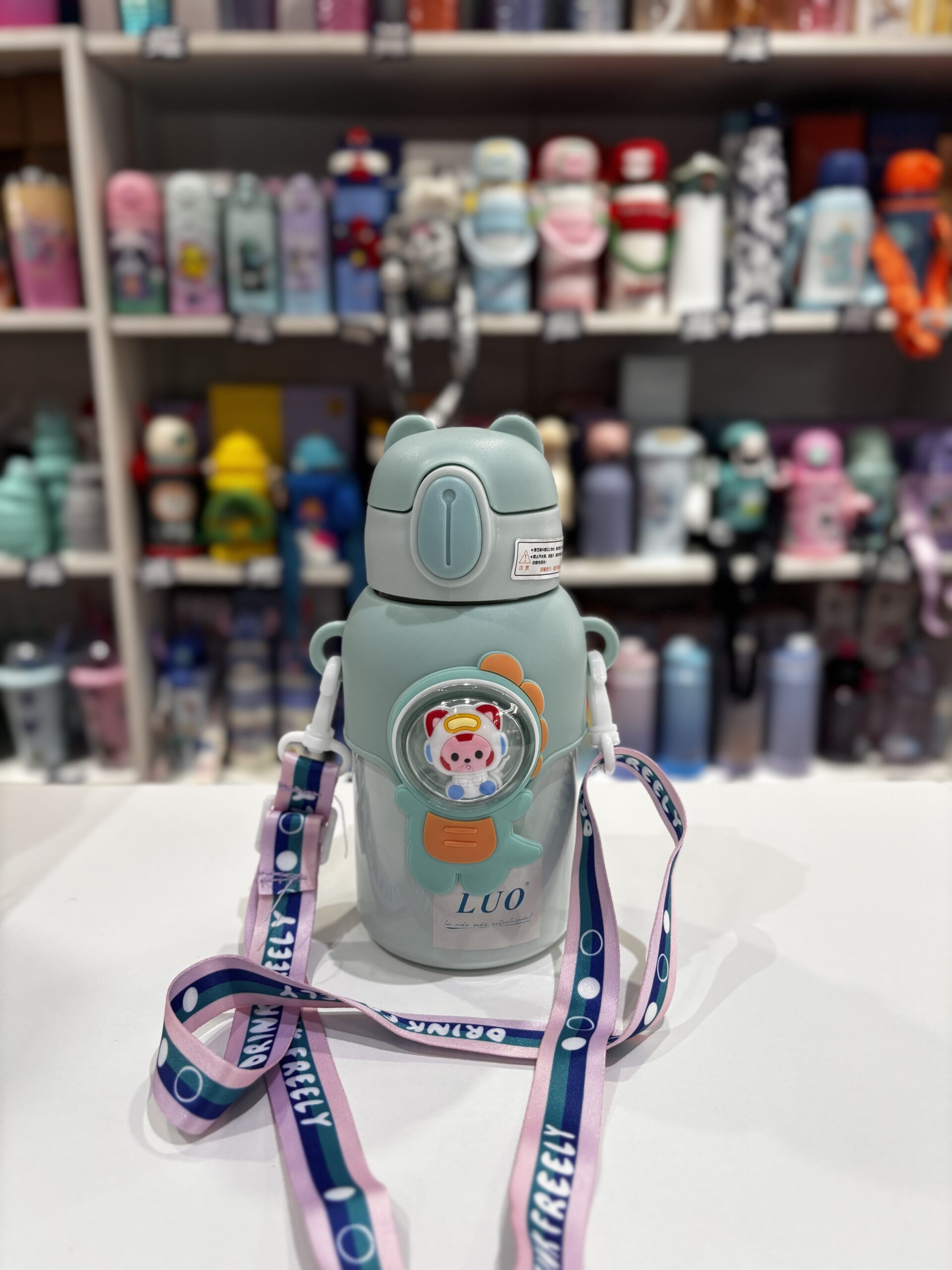 BOTELLA INFANTIL ACERO 450ML LUO CON CORREA Y TAPA BOTON CON PICO DE SILICONA