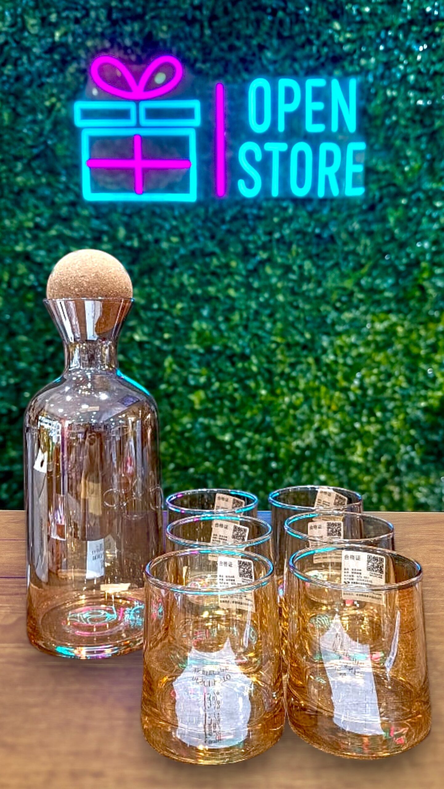 BOTELLA LICORERA + 6 VASOS AMBAR cantidad
