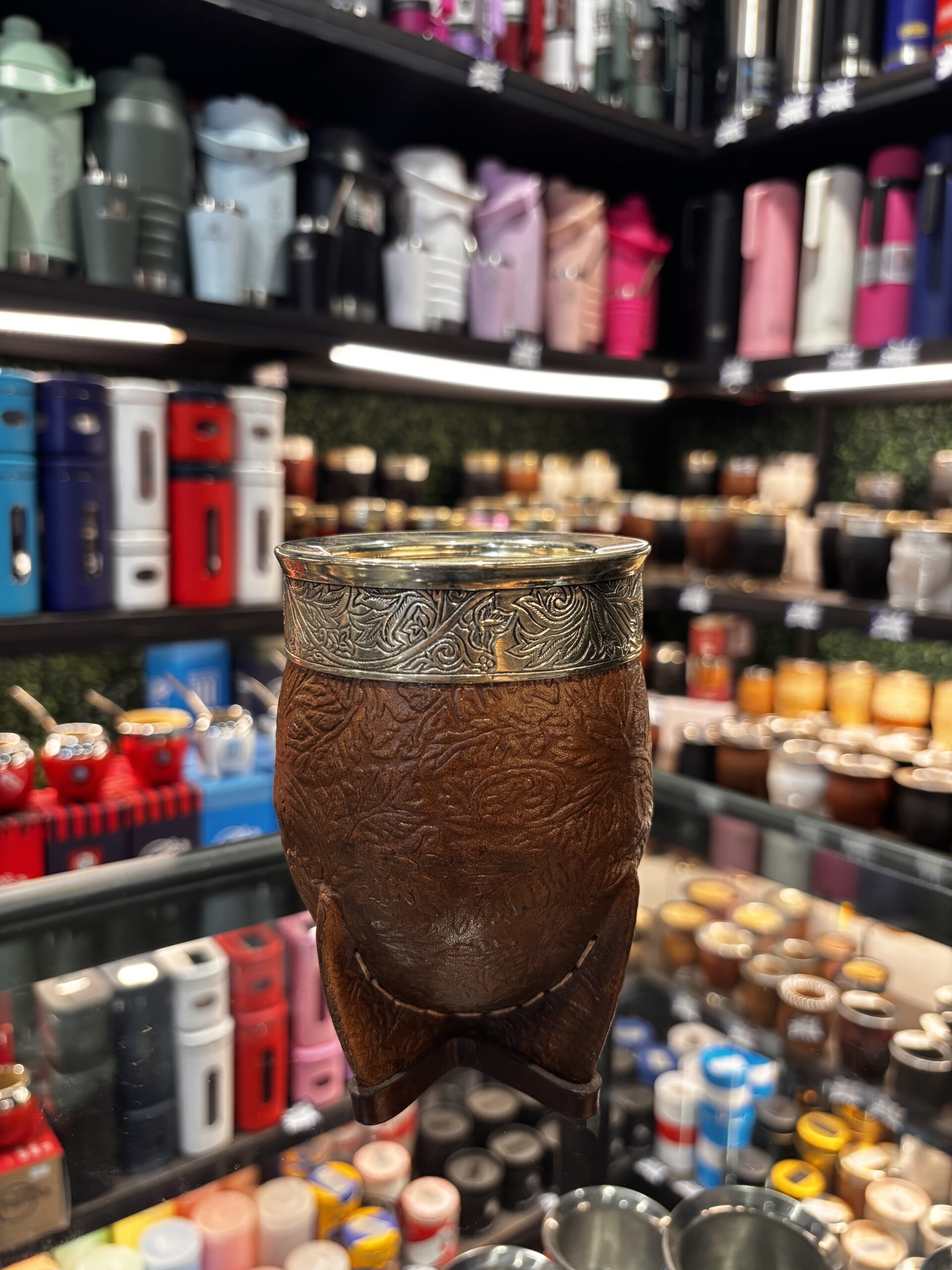 MATE IMPERIAL CON VIROLA DE ALPACA LISA Y CUERO TALLADO cantidad