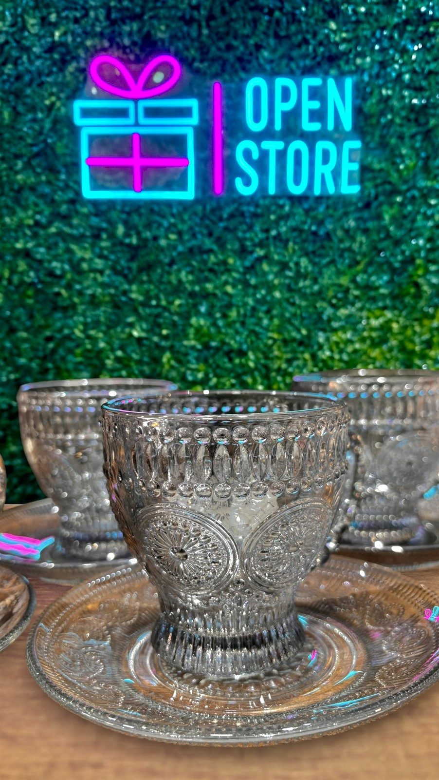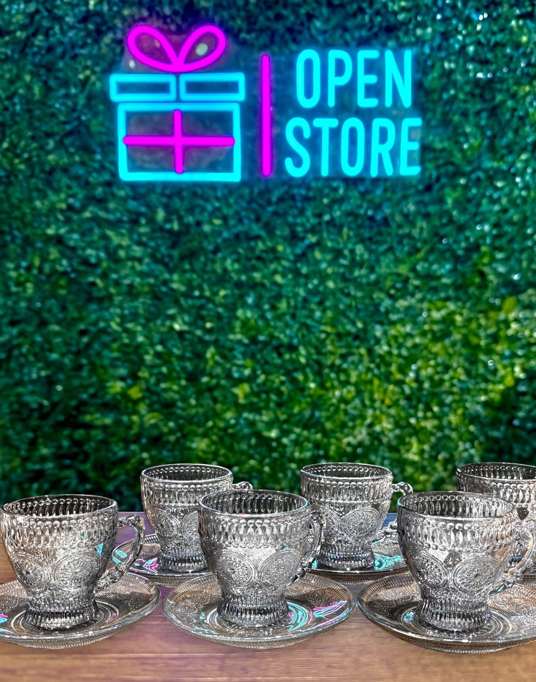 SET TAZAS VIDRIO LABRADO CON PLATO X6 cantidad