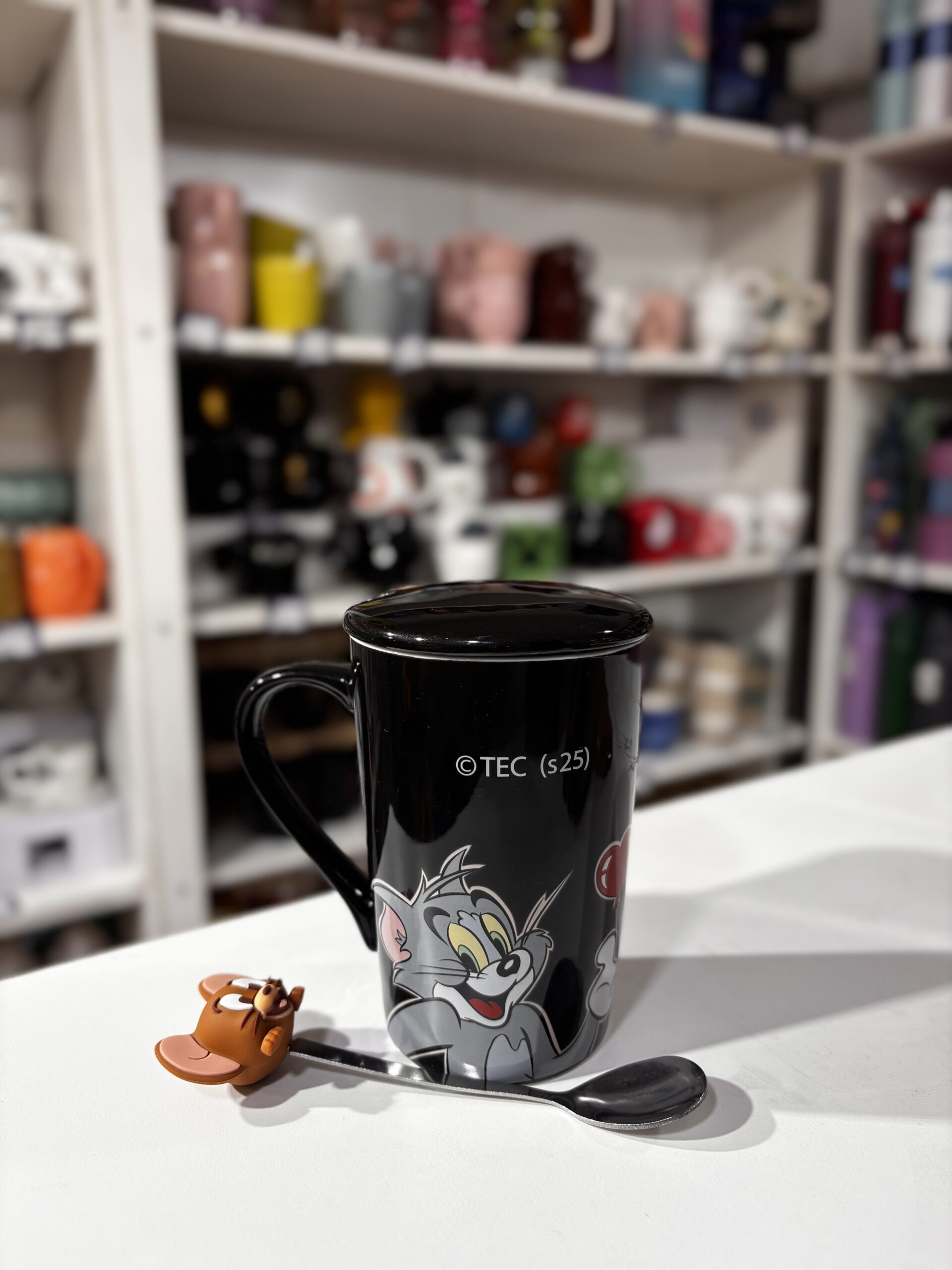 TAZA ALTA PREMIUM TOM&JERRY CON TAPA Y CUCHARA