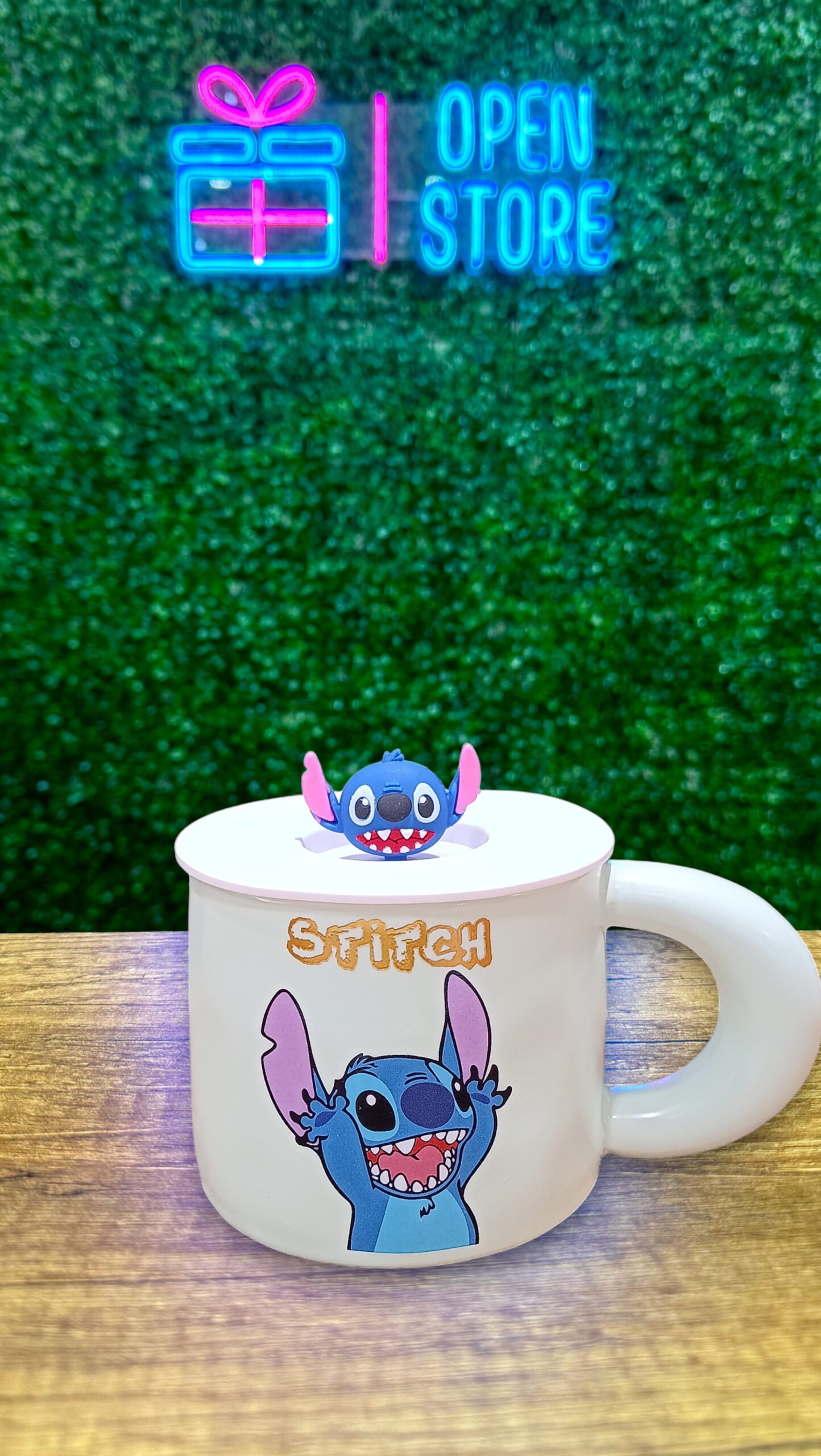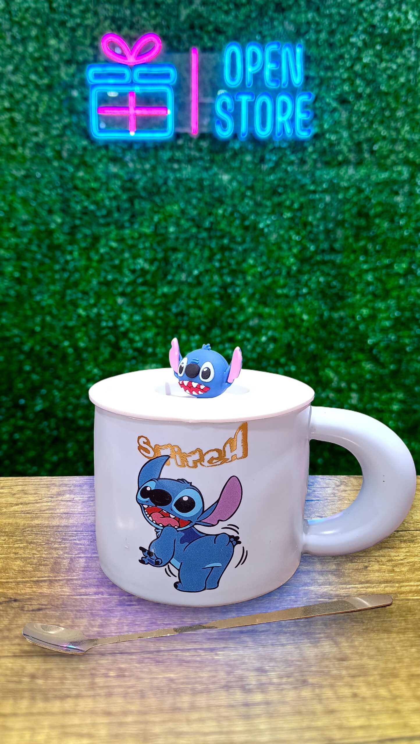TAZA CON TAPA Y CUCHARA STITCH cantidad