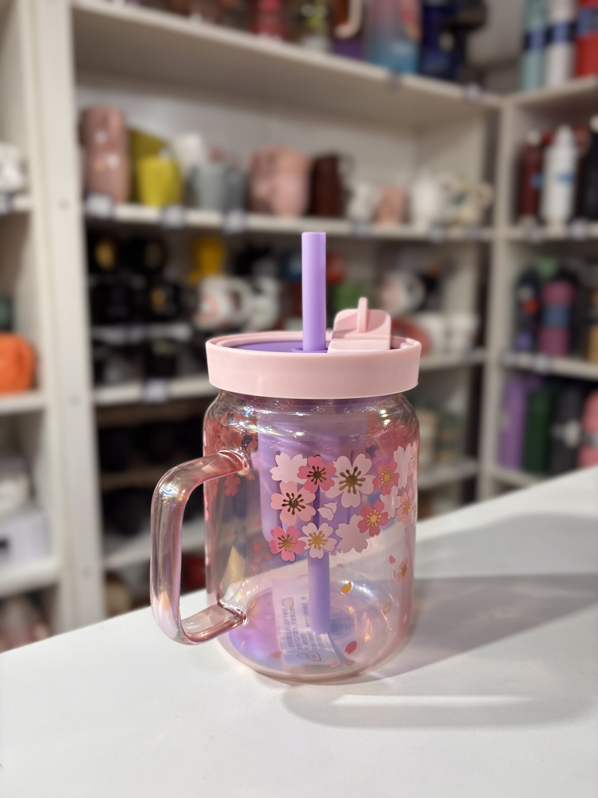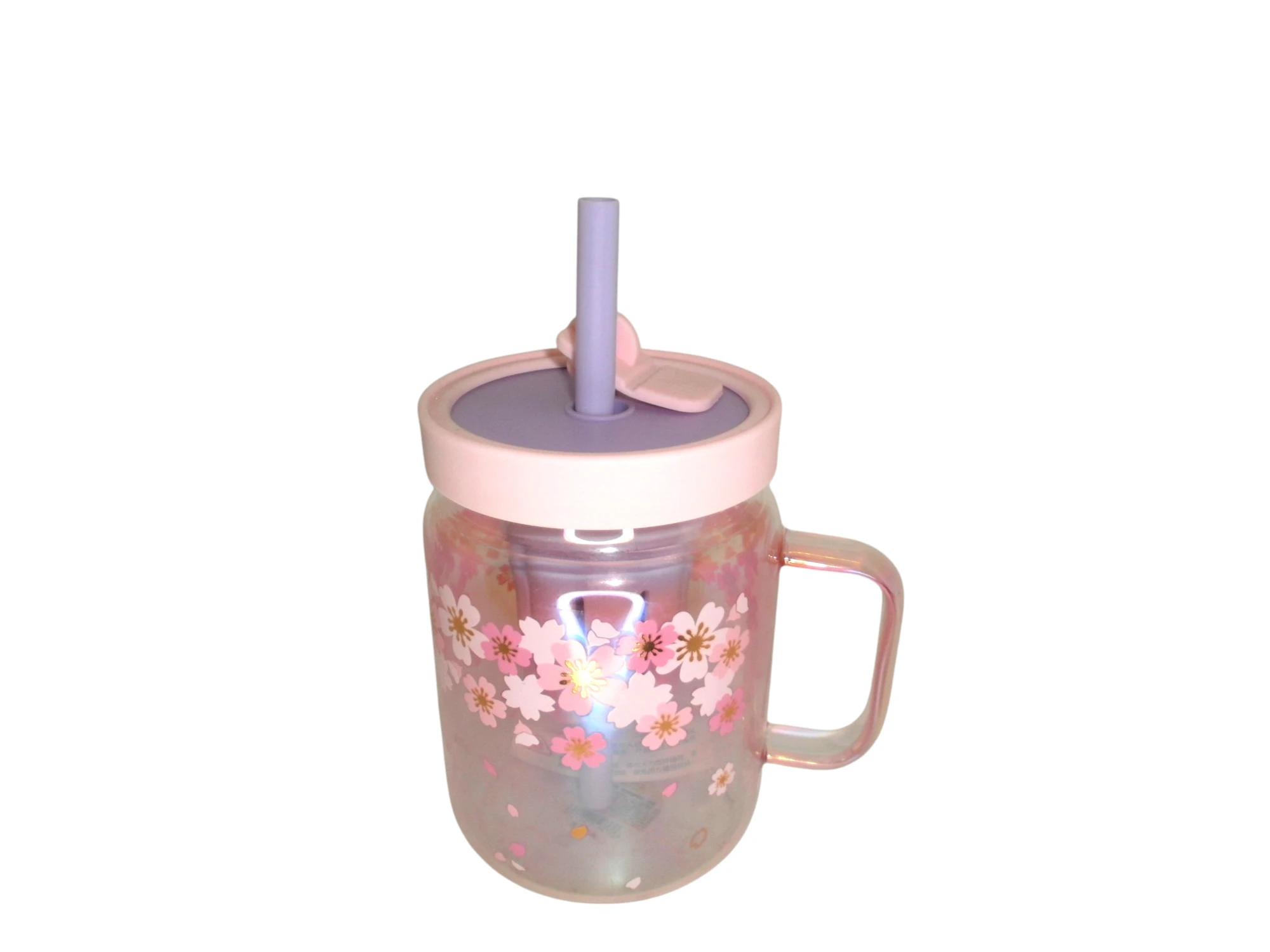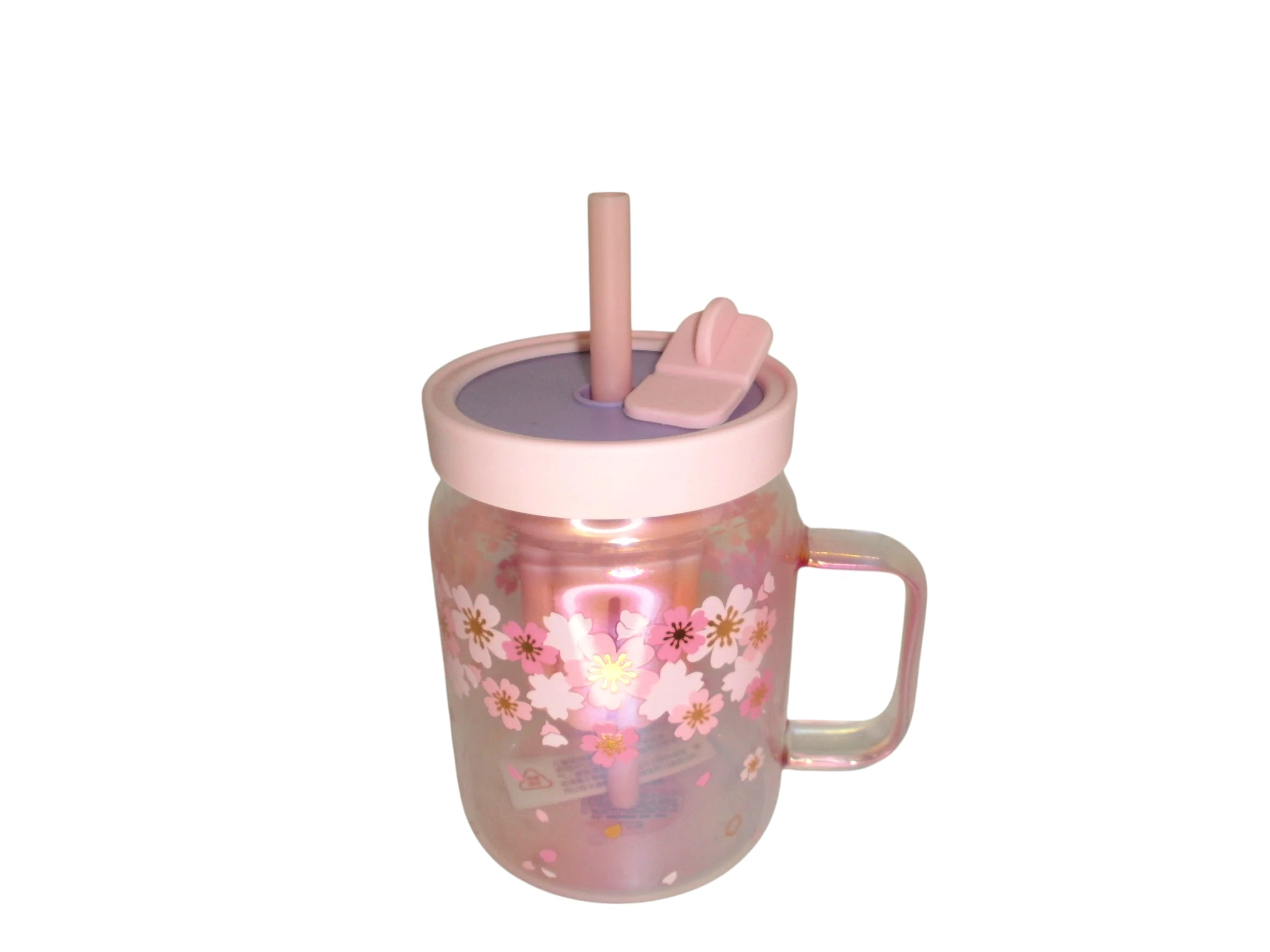 TAZA VIDRIO C/TAPA Y SORBETE TORNASOLADA