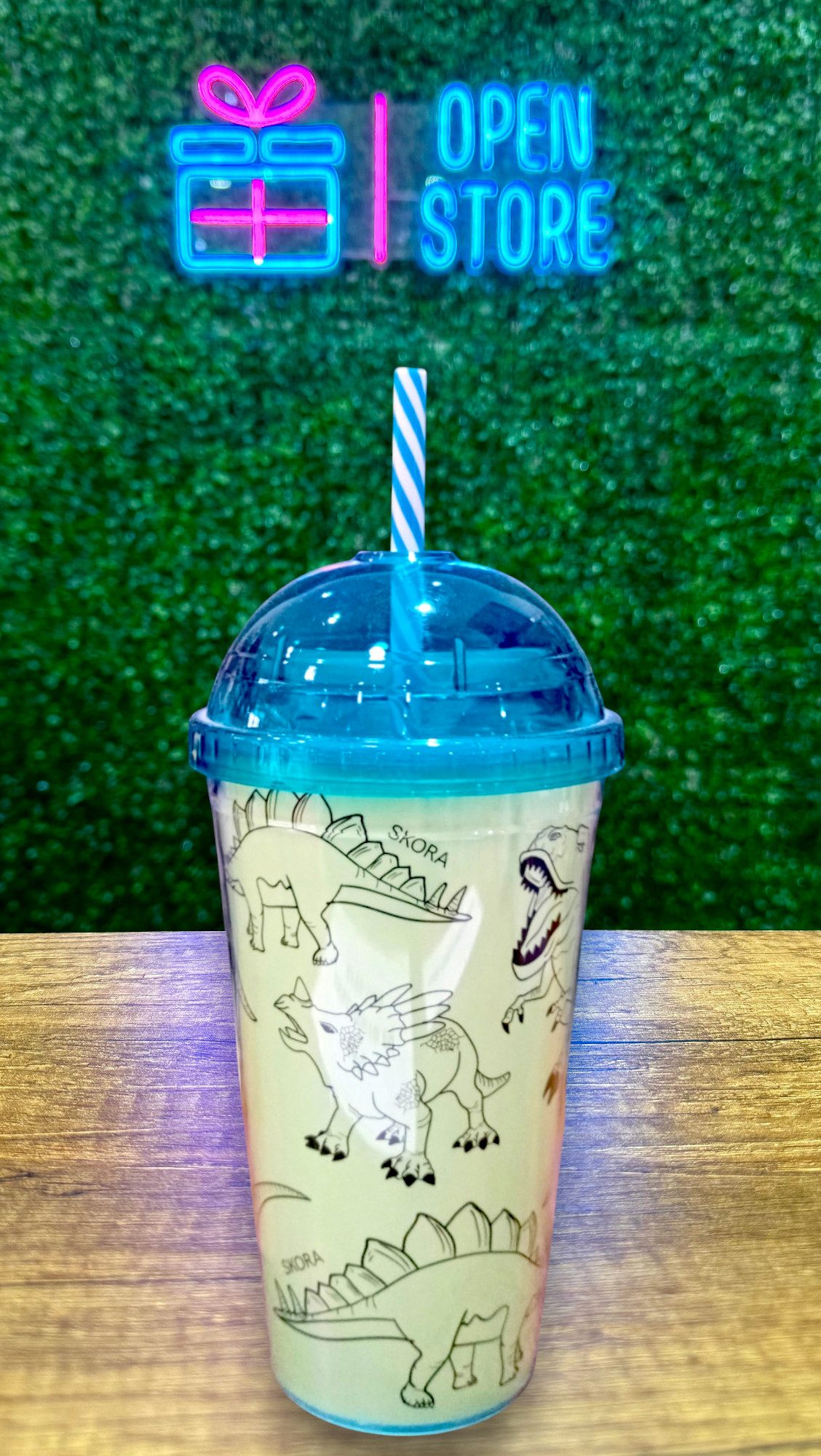 VASO ACRILICO SUMMER DINOSAURIO BRILLA EN LA OSCURIDAD
