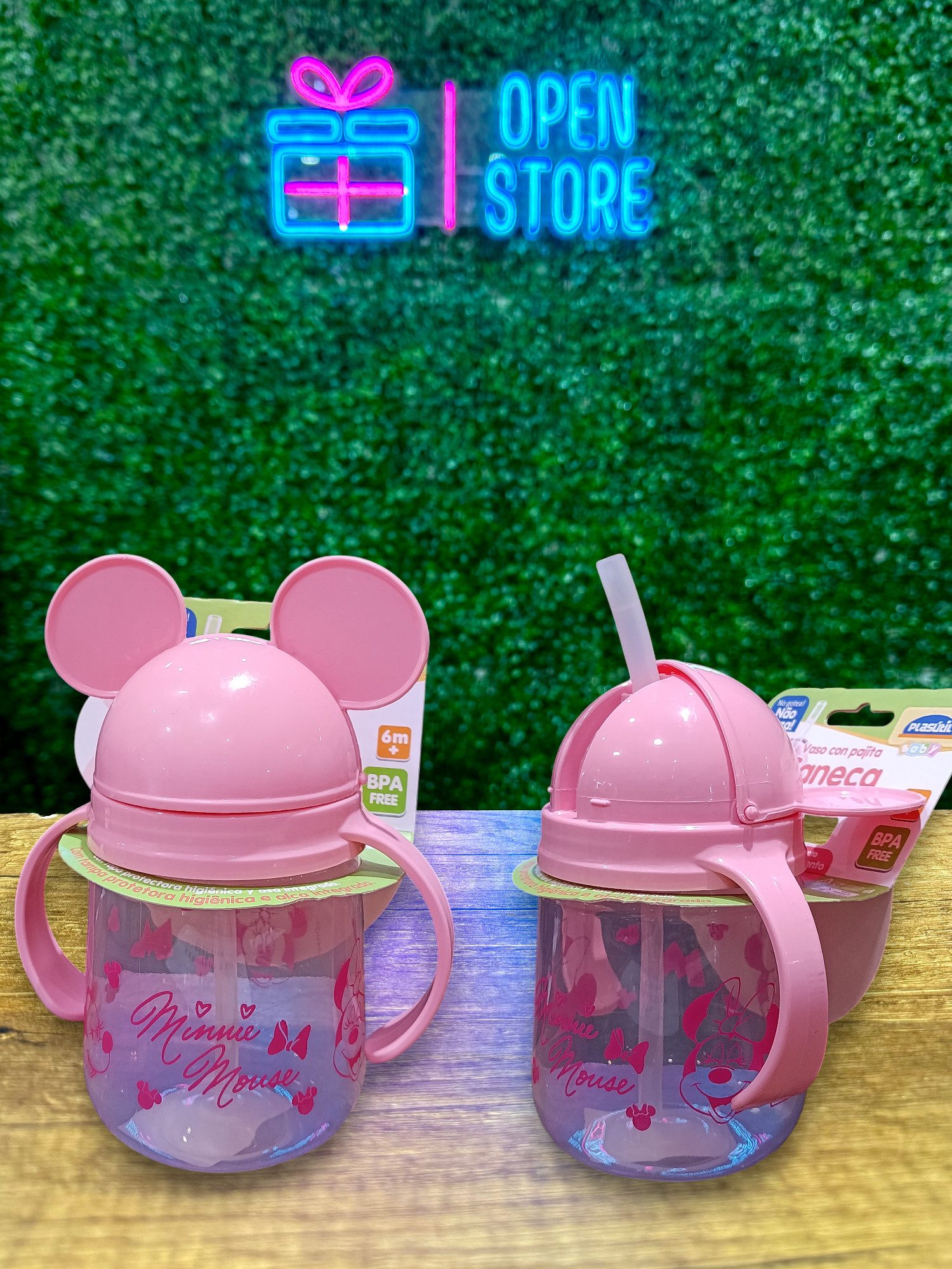 VASO INFANTIL PLASTICO CON ASAS Y PICO SILICONA MINNIE / STITCH cantidad